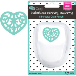 Deco punch for doing handicrafts or creative working. Easy handling with box in the bottom for collecting the cutting. Punched out motive: approx. 1.6 x 1.3 cm. Size: 4.4 x 6.5 x 4.3 cm.