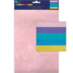 5 sheets of high quality brightly coloured felt. Perfect for all kinds of kids' creative activity, like creating funny creatures or decorations. Quantity: 5 sheets Size: A4