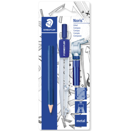 Blistercard containing 1 compass with lead part, universal adapter, lead box and small pencil