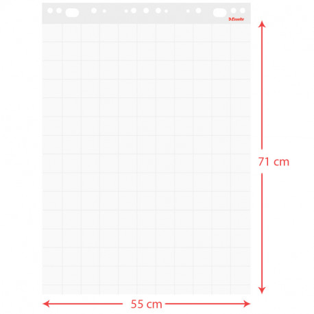 Flipchart pad economy, 55x71cm, one side ruling, 50 sheets 60 gsm TMP paper. Perforated paper and universal hanging system.