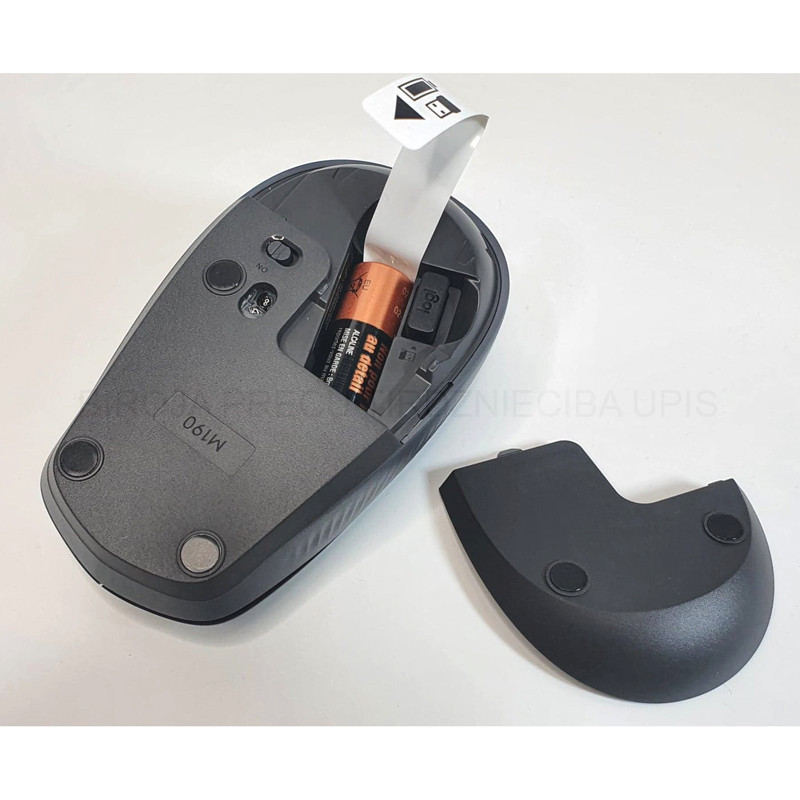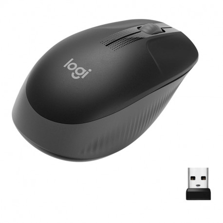 Logitech M190 is a full-size wireless mouse with a comfortable contoured design that follows the natural curve of medium to large hands.