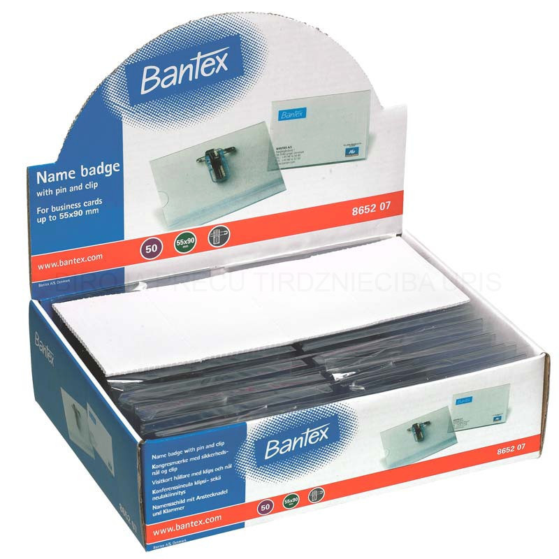 Business card holders/name badge in clear plastic with safety pin and clamp. With paper inserts, ready to print. Suitable for business cards.