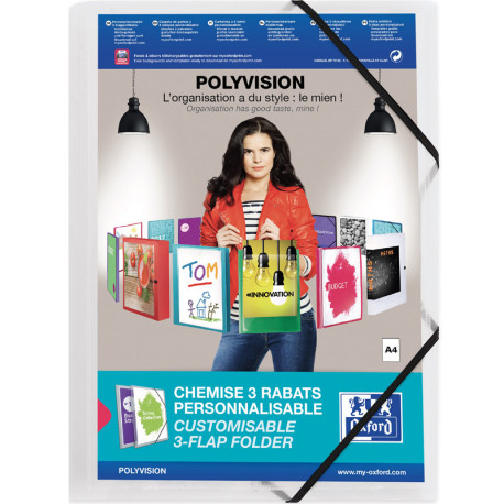 Managers file made from transparent coloured PP with clear pocket on front. With three flaps and elastic closure.