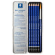 Metal case containing 5 watercolour graphite pencils in assorted degrees and 1 round brush #8