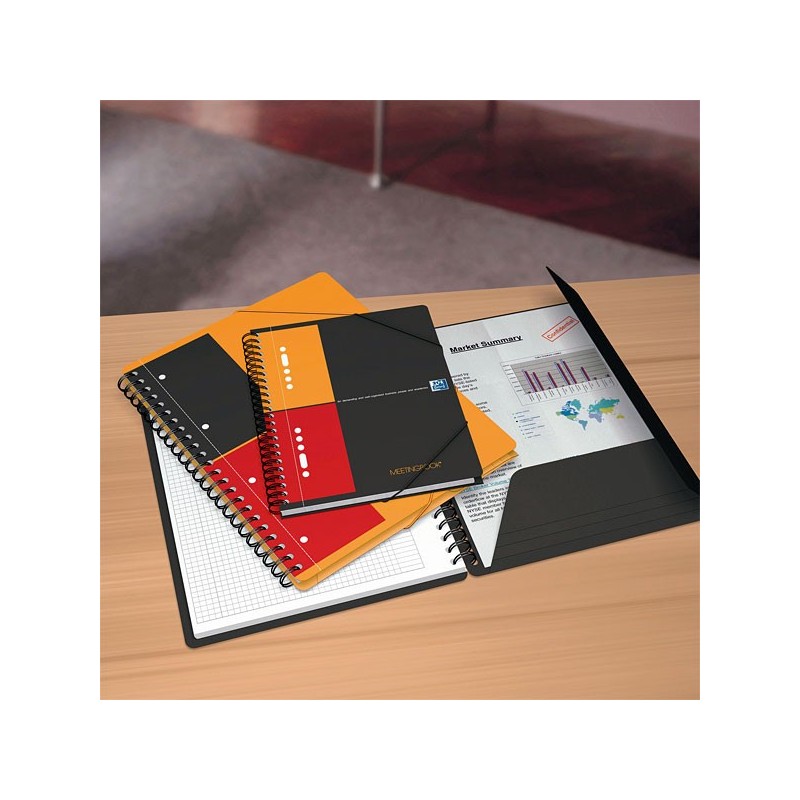 2-in-1 – the perfect meeting book for people always on the move. Notebook and three-flap file integrated into one individual product. Safe storage and transport of documents, CDs and ballpoint pens with three flaps and elastic closure. The page flap can also be used as a bookmark. Practical twinwire and easy filing with microperforation and holes. Cover in light, hard-wearing and dirt-resistant polypro, plus optical white paper, which is pleasant to write on and silky soft to the touch. Useful international information about world time zones, capital cities and all international telephone codes. Special paper ruling with heading field, date field, and double margins, making it easier to organise your notes.