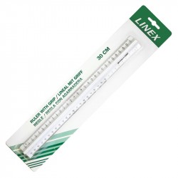 Garums 30 cm, pilna garuma rokturis, 0-30 cm skala ar 1 mm dalījumu, 0-30 cm skala ar ½ mm dalījumu, 15-0-15 cm skala, matēta ABS plastmasa, blisteriepakojums