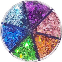 5 veidi mirdzumu un vizuļu, dažādi izmēri un formas, 4 dažādas krāsas, 5 kopā saskrūvējami trauciņi