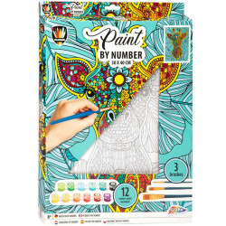 Audekls ar skici uz rāmja 28 x 28 cm, 6 tūbiņas akrila krāsas à 12 ml, tūbiņa ar zaigojošiem mirdzumiem, 3 otiņas, palete ar 6 trauciņiem, pamācība