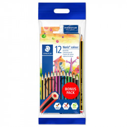 12 krāsu zīmuļi Noris® Colour 185 grafīta zīmulis Noris® 120 dzēšgumija Mars® Plastic