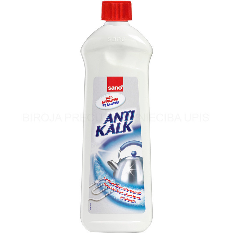 Lai iztīrītu tējkannas un karstā ūdens kannas: pārliecinieties, ka tējkannas/kannas ir tukšas un nav karstas. Uzlejiet SANO AntiKalk līdzekli tik daudz, lai tas nosedz kaļķakmens nogulsnes un atstāj uz 10 min. Pēc tam kārtīgi izskalot trauku ar aukstu ūdeni. Ieteicams piepildīt trauku ar ūdeni un uzvārīt, pēc tam iztukšot. Nepieļaut ūdens izšļakstīšanos vārīšanas laikā!