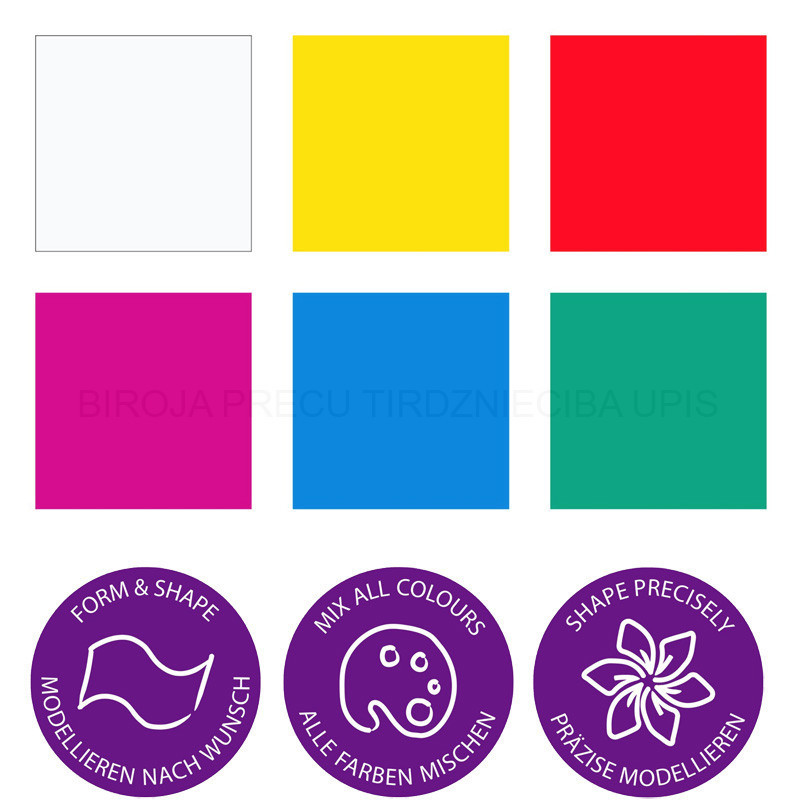 Māksliniekiem un lietpratējiem. Brīnišķīga formas noturība un krāsu sajaukšanās, sacietē karsējot cepeškrāsnī.