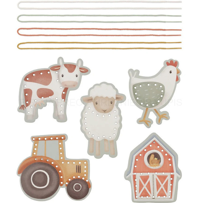 Izvēlies kartiņu un sāc auklot! Sekojiet jautro tēlu paraugam. Savērp aukliņas gar traktoru, aitu un govi. Jautra un izklaidējoša aktivitāte. Šajā auklošanas kartiņu komplektā ietilpst aukliņas un 5 kartona kartītes ar skaistām ilustrācijām no Little Farm kolekcijas. Mazuļiem patiks vingrināt smalko motoriku, ar lielu precizitāti izverot aukliņu caur mazajiem caurumiņiem kartītēs. Stundām ilga jautrība garantēta!