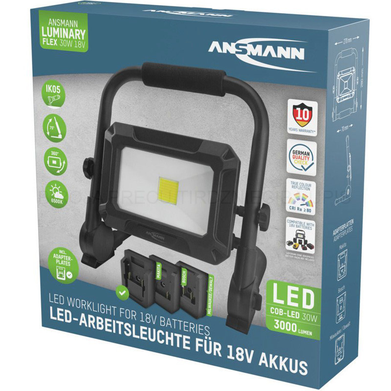 ANSMANN nozīmē kvalitāti un uzticamību! Mēs esam izvirzījuši mērķi nodrošināt augstas kvalitātes produktus profesionāļiem un hobiju amatniekiem. Mūsu FL30W 18V ir profesionāls prožektors ar 30 W LED tehnoloģiju. Uzticamais ANSMANN lukturis nemanāmi integrējas ikdienas lietošanā, darbam mājās un ap to, piemēram, darbnīcās, būvlaukumos, rūpniecībā, mājsaimniecībā, dārzā, pagalmā vai garāžā.