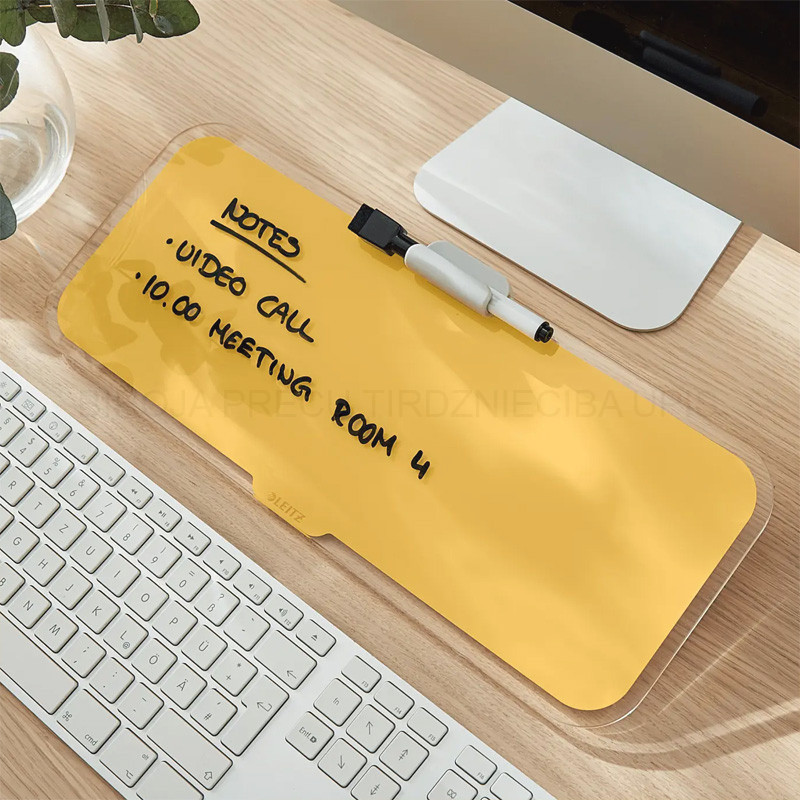 Stikla galda tāfele ar sauso dzēšanas funkciju, kas ir ideāli piemērota piezīmju veikšanai vai ziņojumu un atgādinājumu publicēšanai.